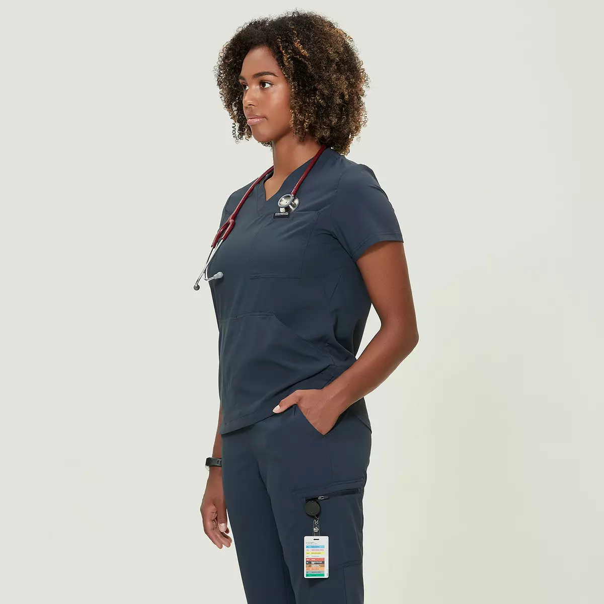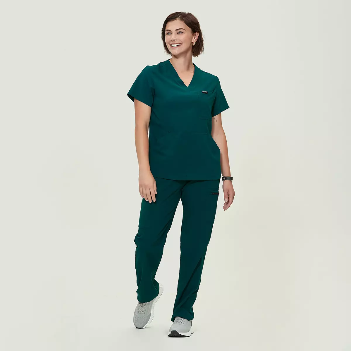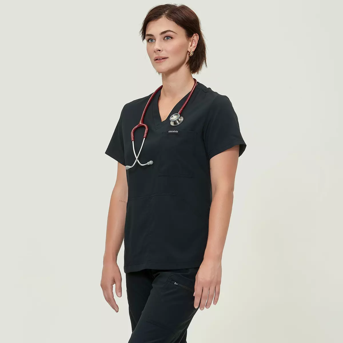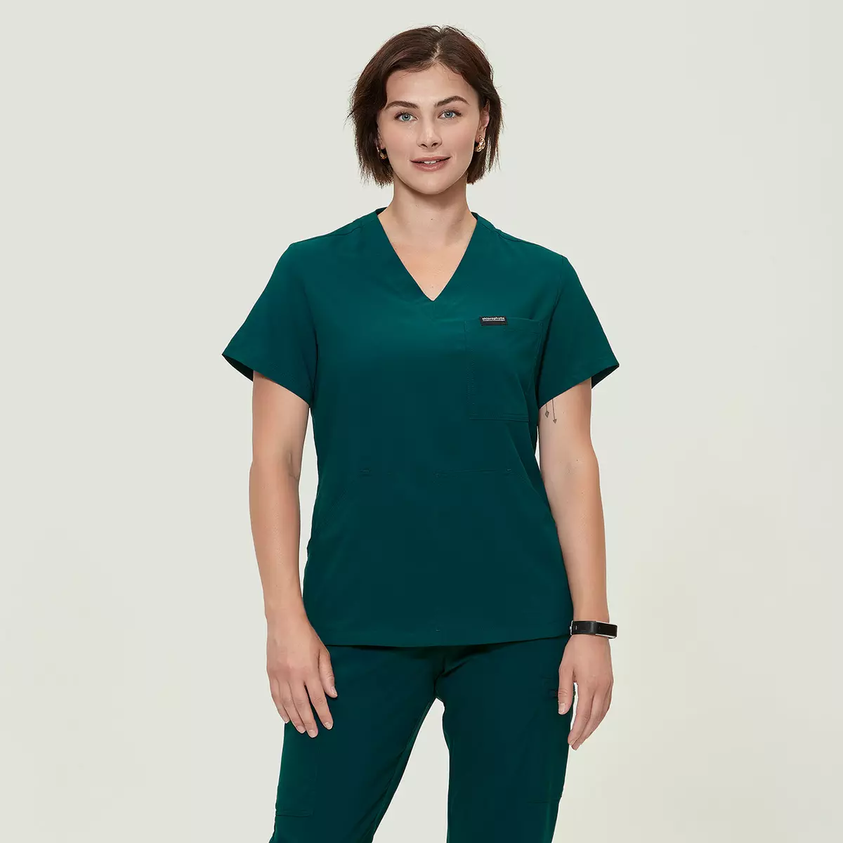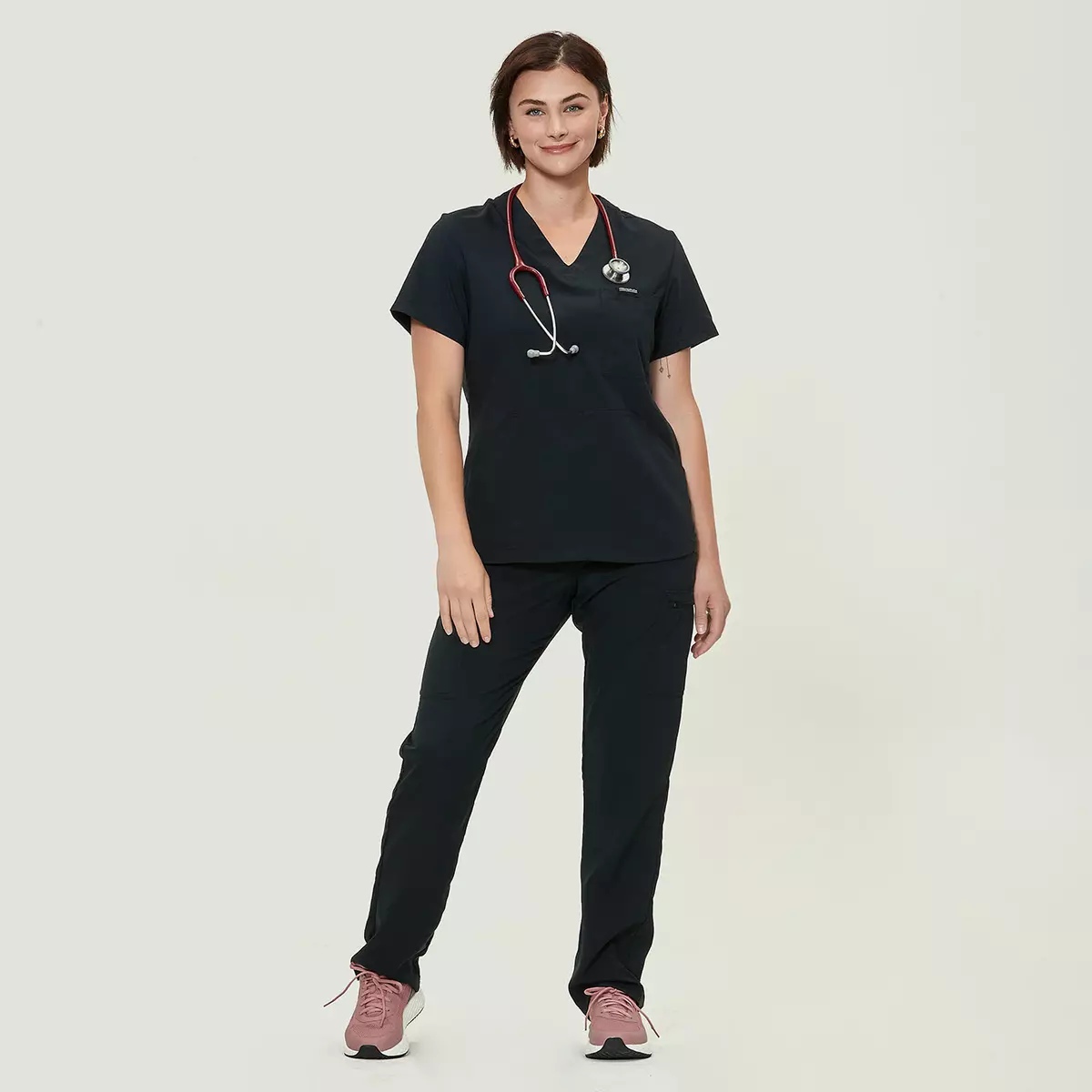 Cette chemise médicale pour femme rendra vos journées de travail plus confortables. Elle est munie d’une poche kangourou pratique séparée en 2 sections. Grâce à son traitement déperlant DWR, la matière est résistante à l’eau, elle sèche rapidement et un fini antimicrobien offre une excellente protection contre les odeurs dues à la transpiration. Fini le repassage avec son tissu extensible composé à 100% de polyester. Cet uniforme d’infirmière deviendra certainement un incontournable dans votre garde-robe de travail.