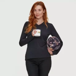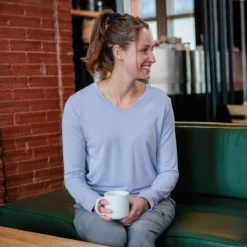 Un chandail à col en v doux, extensible et durable, pour un style écologique et pratique.