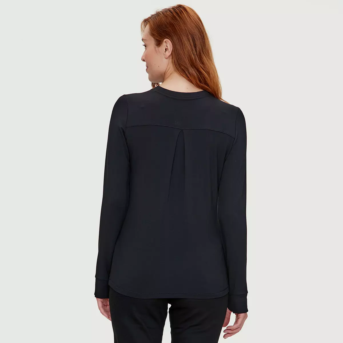 Notre chandail à col haut Déa est également très pratique. Grâce à sa résistance aux froissements et à son absence de rétrécissement au lavage, il gardera sa forme et sa qualité pendant longtemps.