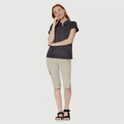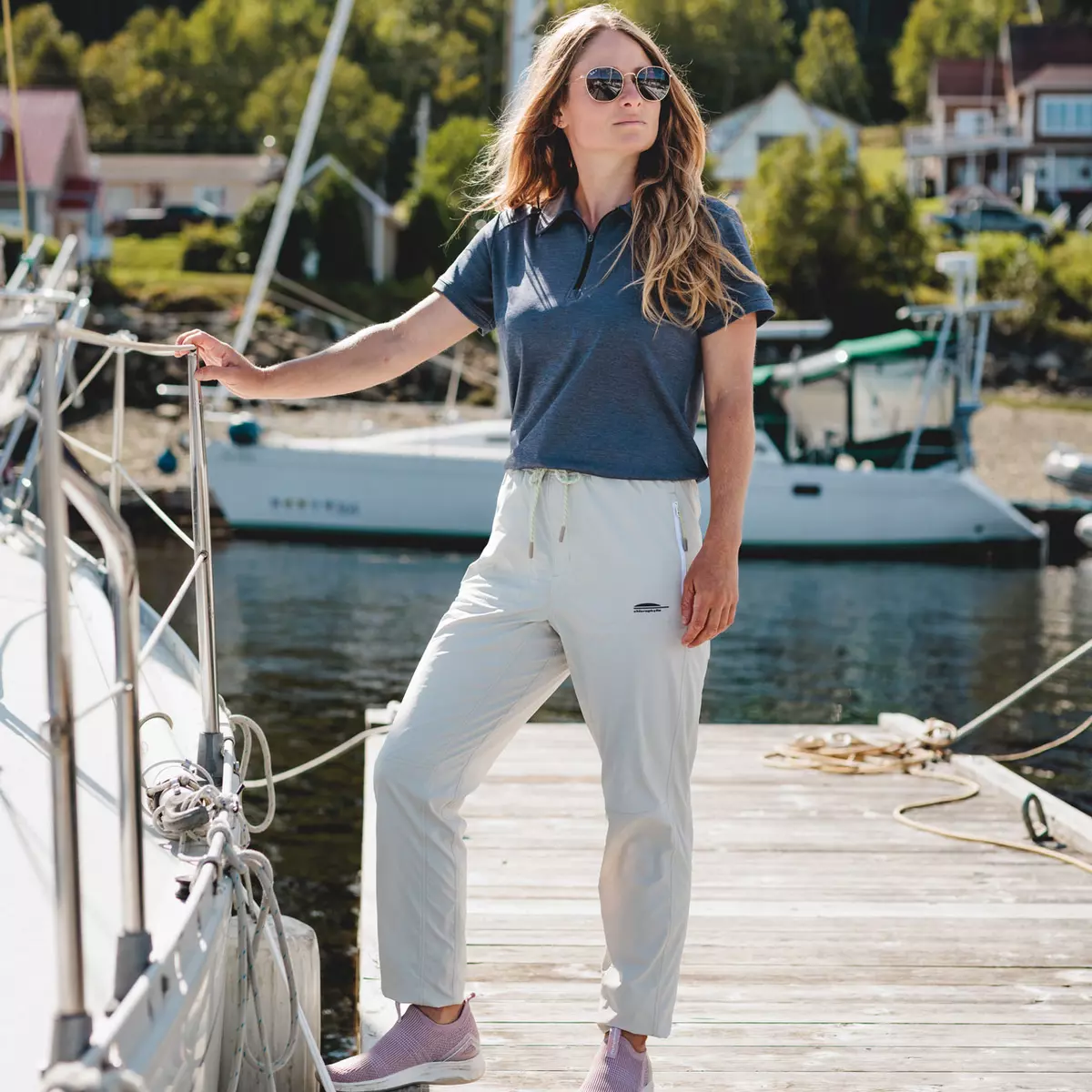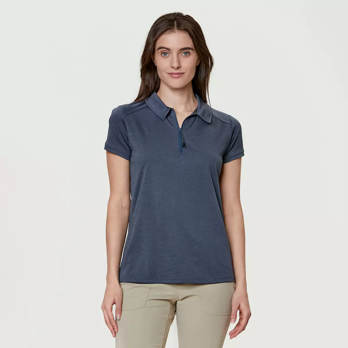 Notre chandail polo pour femme Jane est parfait pour un style de vie actif que ce soit pour une belle partie de golf ou une journée à la marina. La matière écoresponsable extensible est composée de 66 % polyester recyclé et 34 % polyester, elle est respirante et légère. Elle évacue l’humidité, ce qui contribue à maintenir le corps à une température naturelle d’environ 37 degrés en vous gardant au sec. Un chandail polo polyvalent qui combine confort, légèreté et durabilité.