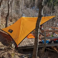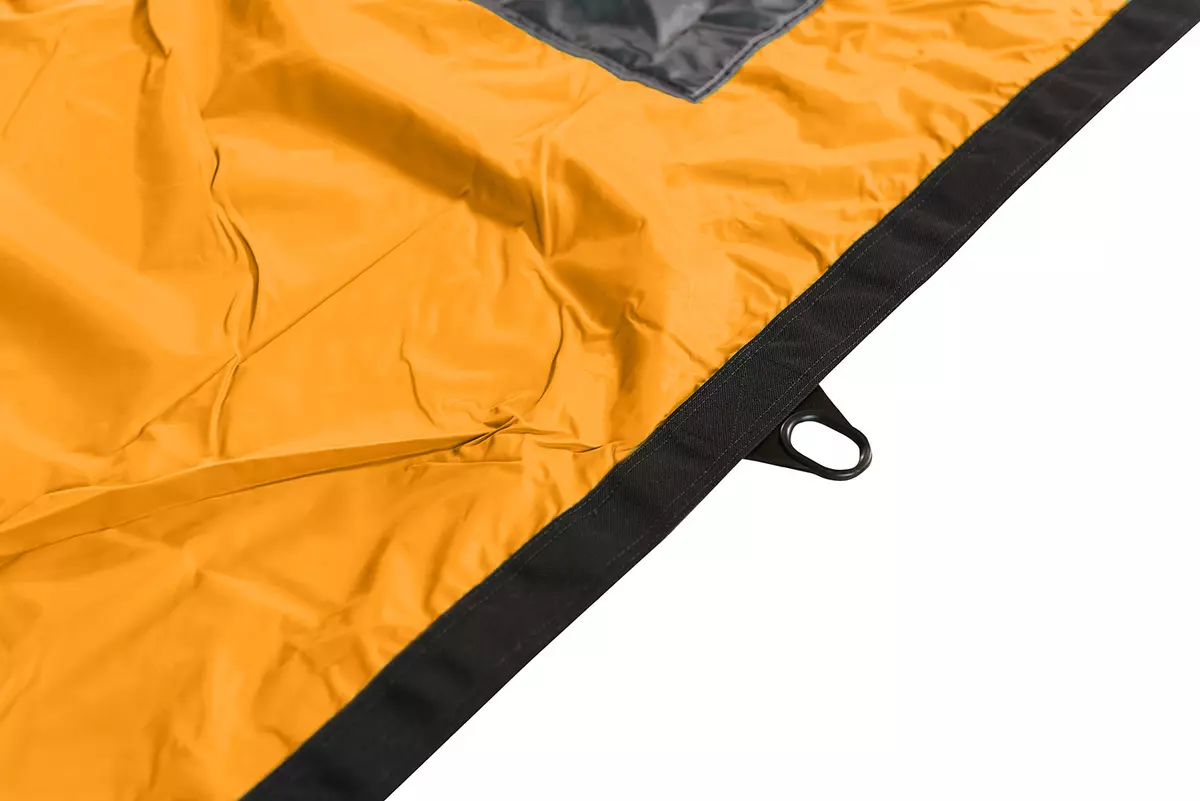 La bâche La Caverne est un accessoire indispensable pour vos aventures en plein air. Spacieuse, elle offre un abri sĂ»r et sec pour plusieurs personnes, que ce soit pour un repas convivial ou une nuit de camping. Elle est fabriquĂ©e Ă partir d’un tissu enduit de silicone incroyablement lĂ©ger et compact et elle est rĂ©sistante aux dĂ©chirures.